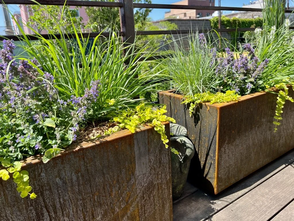 Corten Steel develops an external patina of rust that is corrosion resistant. It is strong, long-lasting, and decorative. We offer corten steel garden edging to keep dirt where it belongs, and freestanding corten steel planter boxes.